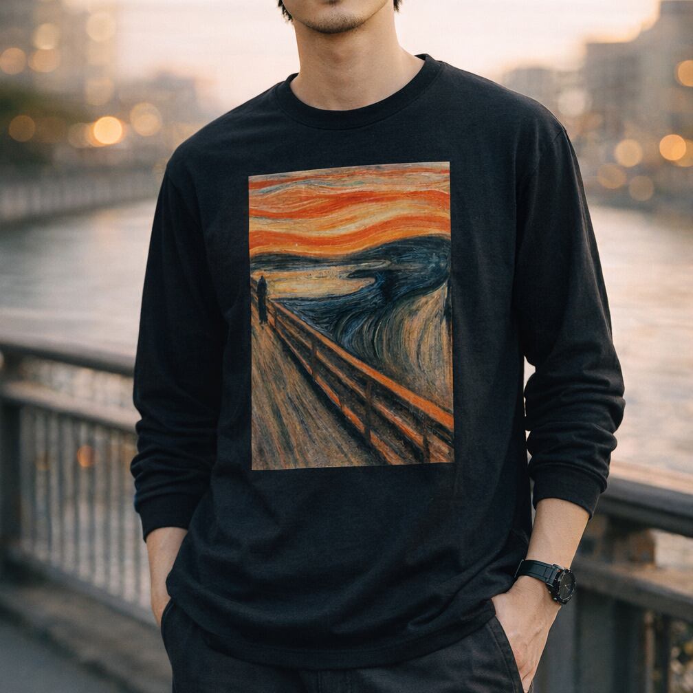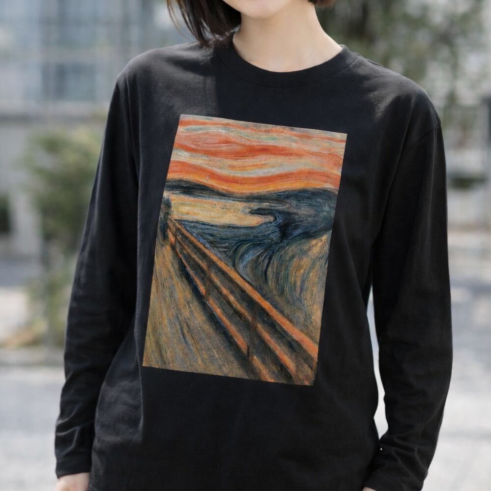 ノルウェーの画家エドヴァルド・ムンクの代表作「叫び」をモチーフにしたアートなロンTです。