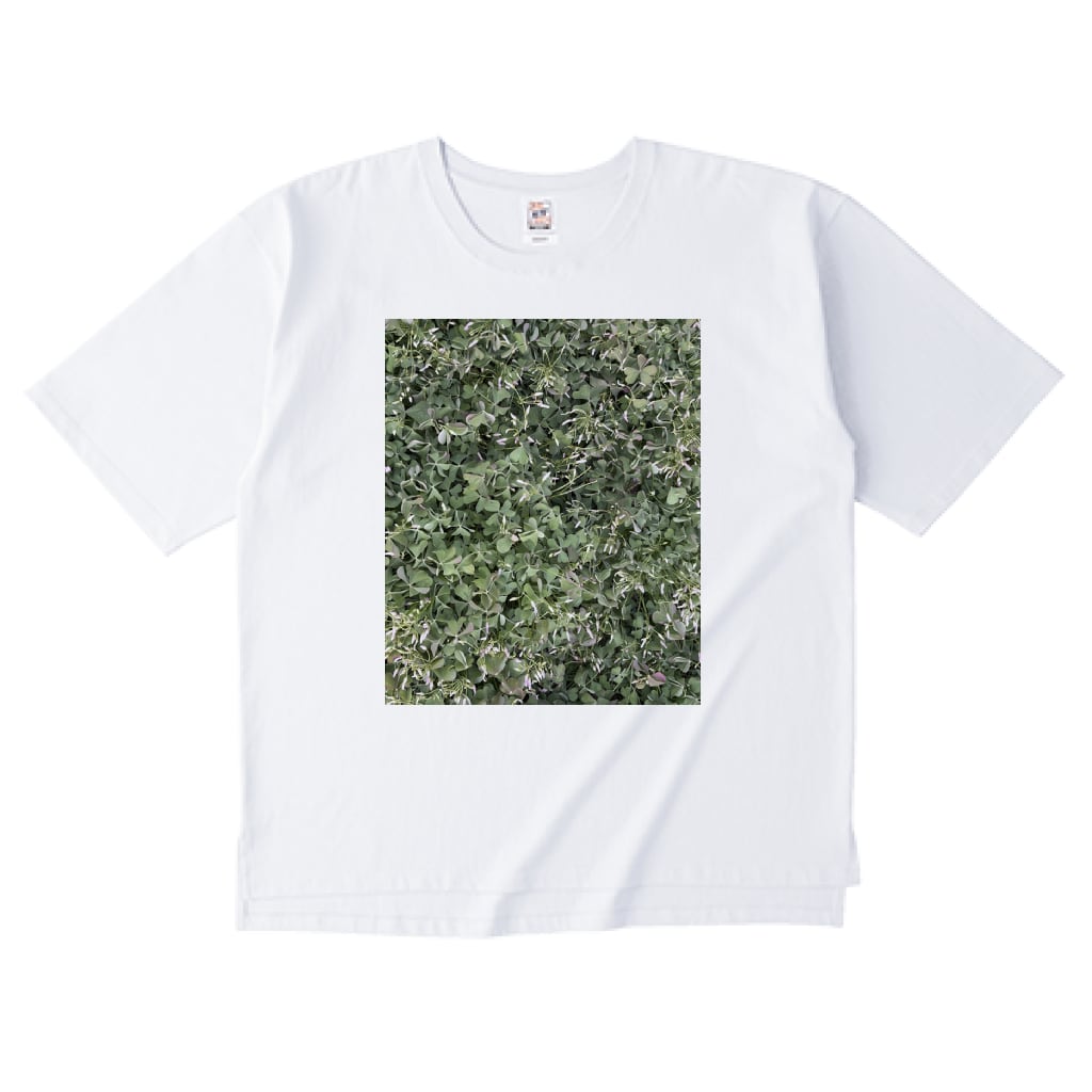 ゆったりとしたシルエットと裾スリット仕様のオーバーサイズTシャツ。