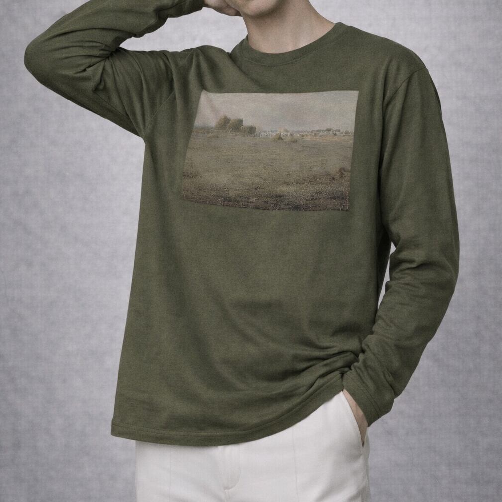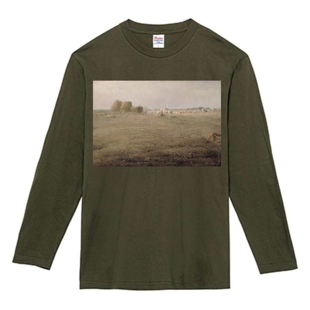 フランスの画家ジャン=フランソワ・ミレーによって描かれた誰もが一度は目にしたことのある名画「落穂拾い」(おちぼひろい)をモチーフにしたアートなTシャツです。