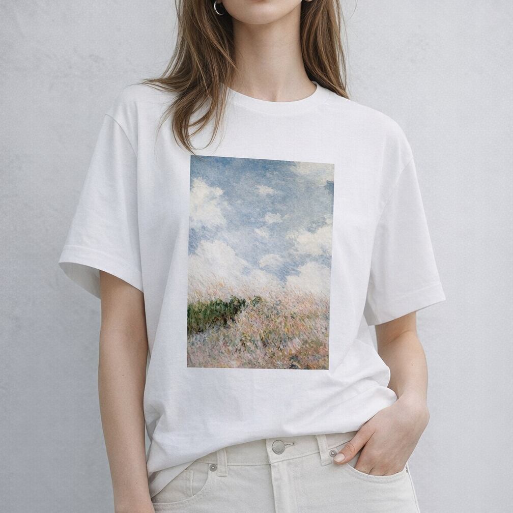 フランスの画家クロード・モネが描いた「日傘の女(左向き)」をモチーフにしたアートなTシャツです。
