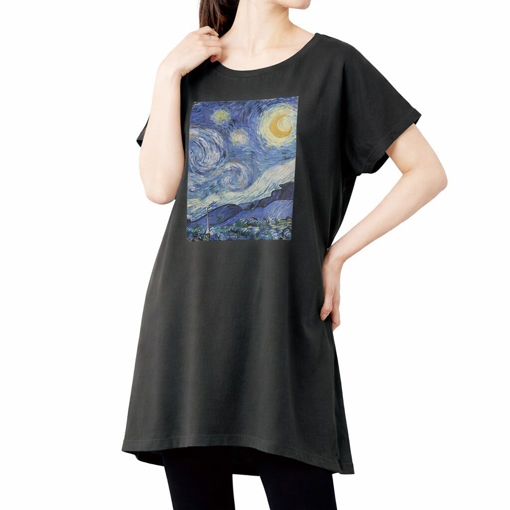 フィンセント・ファン・ゴッホの代表作の一つである「星月夜」(ほしづきよ)をモチーフにしたアートなワンピースです。