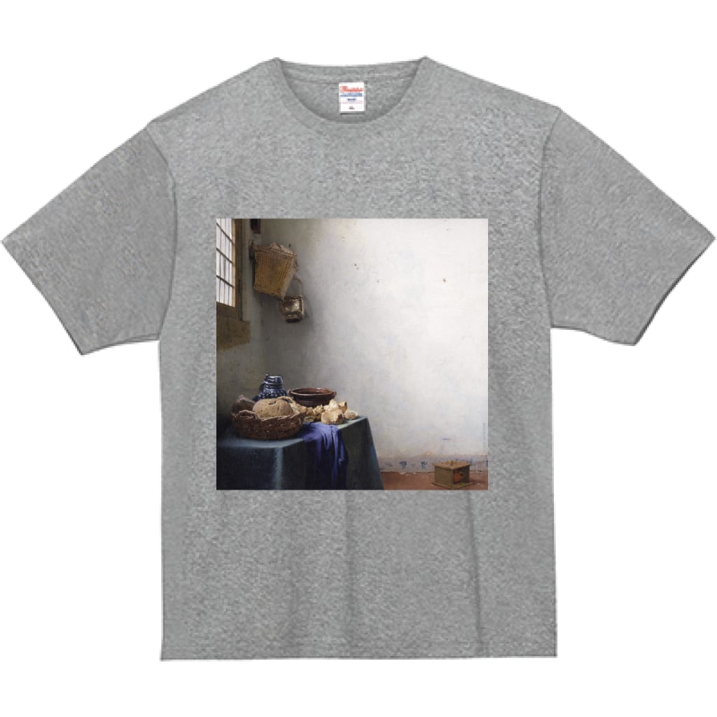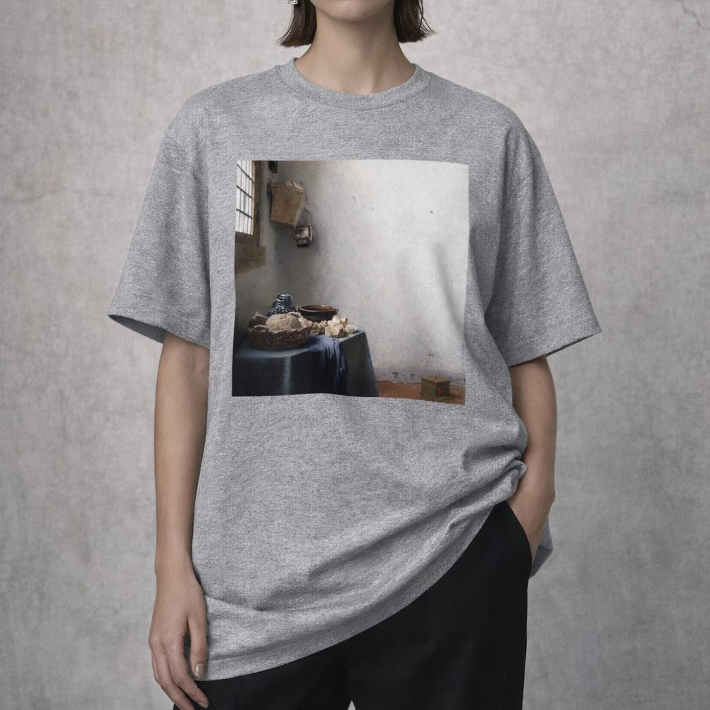 ヨハネス・フェルメールが描いた名画『牛乳を注ぐ女』をモチーフにしたアートなTシャツです。
