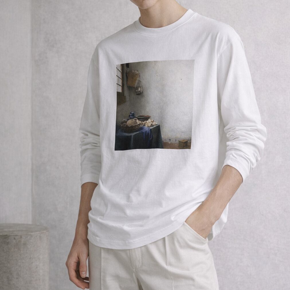 ヨハネス・フェルメールが描いた名画『牛乳を注ぐ女』をモチーフにしたアートなTシャツです。